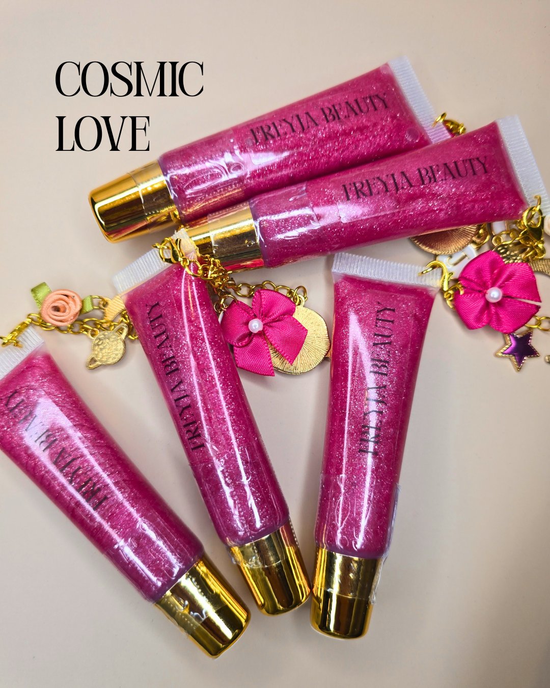 But there’s more to our lip gloss than just its moisturizing magic. Each tube comes with a charming accessory – a cute charm that can easily clasp onto your wallet, purse, or any other item you fancy. Collect a few and craft a unique charm bracelet that reflects your personal style!