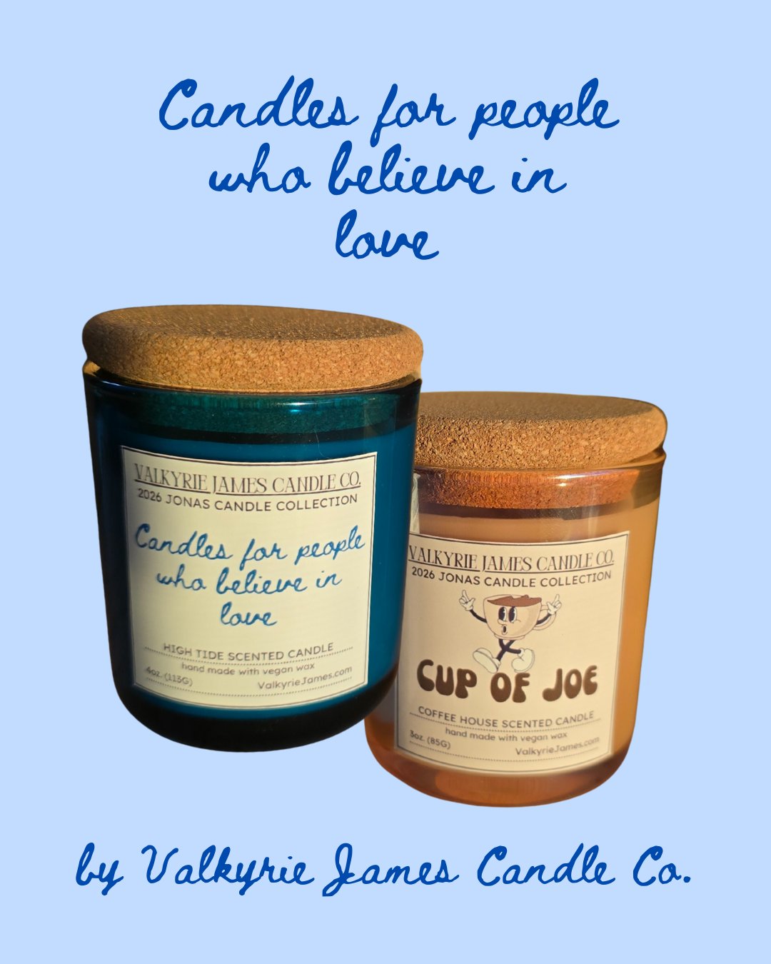 Presenting Our Joe Jonas Candle Collection! Inspired by his 2nd studio album, Music for People who Believe in Love, and more! This collection features 3 large and 2 mini sizes.